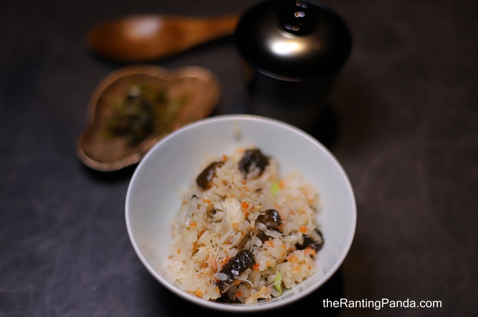 The last savoury course is a Donabe dish which features Kekani – Hokkaido Hairy crab rice with pickled cucumber, served with a homemade hairy crab ‘mayonnaise’ and spicy pickled mustard leaves.