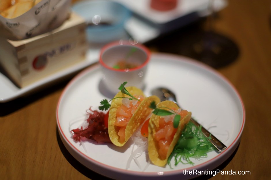 I started with some easy snacks, Salmon Nobu Taco (S$7/per piece) and the Crispy Rice with Spicy Tuna (S$36). The crispy rice is quite unique as it features the fried rice cube paired with tuna sashimi and butter soy sauce by the same. Good starters here to go with some cocktails!
