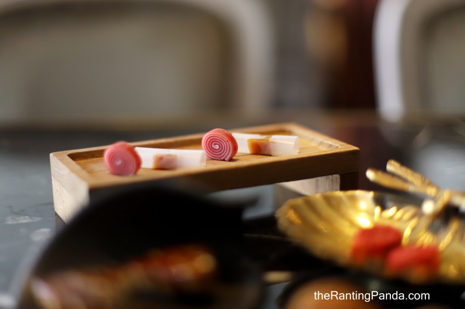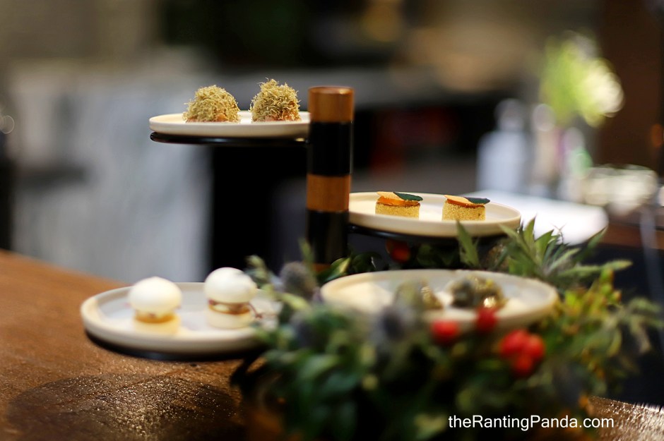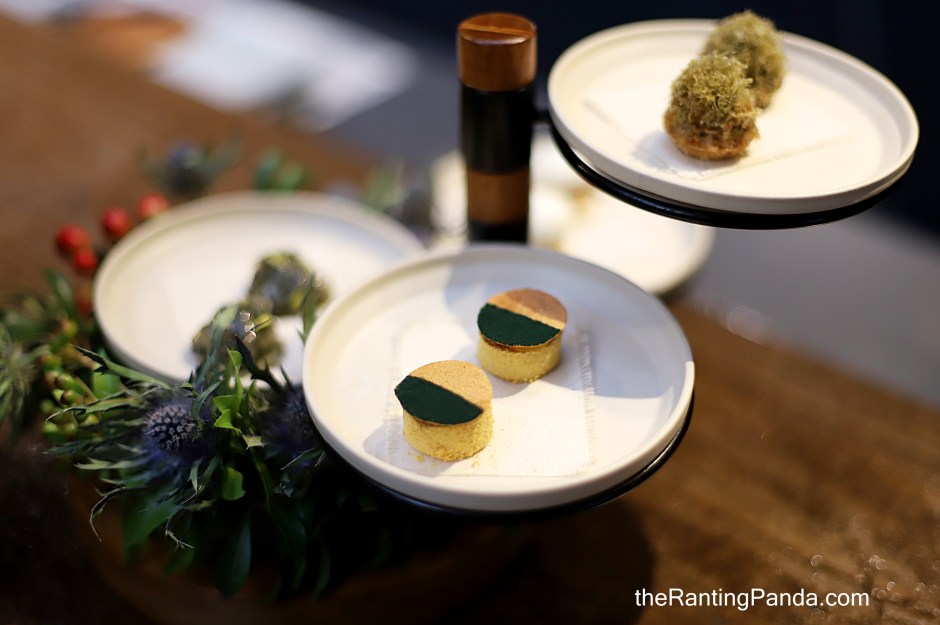 Next up is a beautiful four tier of further snacks comprising of the Bergamot Meringue, Beetroot; Confit Potato, Smoked Herring, Egg Yolk; A5 Hokkaido Beef Tartare, Tororo Kombu; Madai, 20 years old Mirin, Japanese Leeks, Chamomile Jelly. I guess this showcase the myriad of ingredients used at Cloudstreet, and there seem to be quite a fair bit of Japanese ingredients used for now.