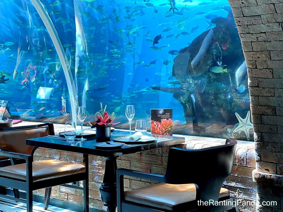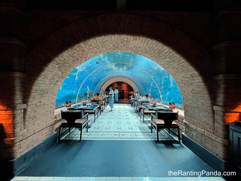 And you might have guessed it, there is a different minimum spend per person depending if you opt for tunnel or non-tunnel seats. Do note that while some non-tunnel tables are right beside the glass panels, there are also tables where you are not directly beside the fishes.