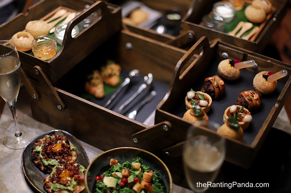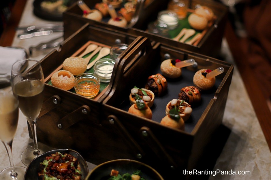 The brunch started with an elaborate out of the box starter kit where a lovely wooden box is presented with a range of morsels which include the likes of caviar puri, masala donuts, truffle puri, semolina cake and pepper fry croissant.