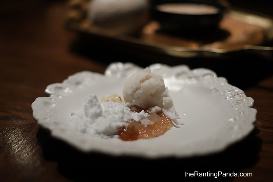 Sago boiled in young coconut water – Longan ice, longan jam, frozen coconut milk, grilled coconut
