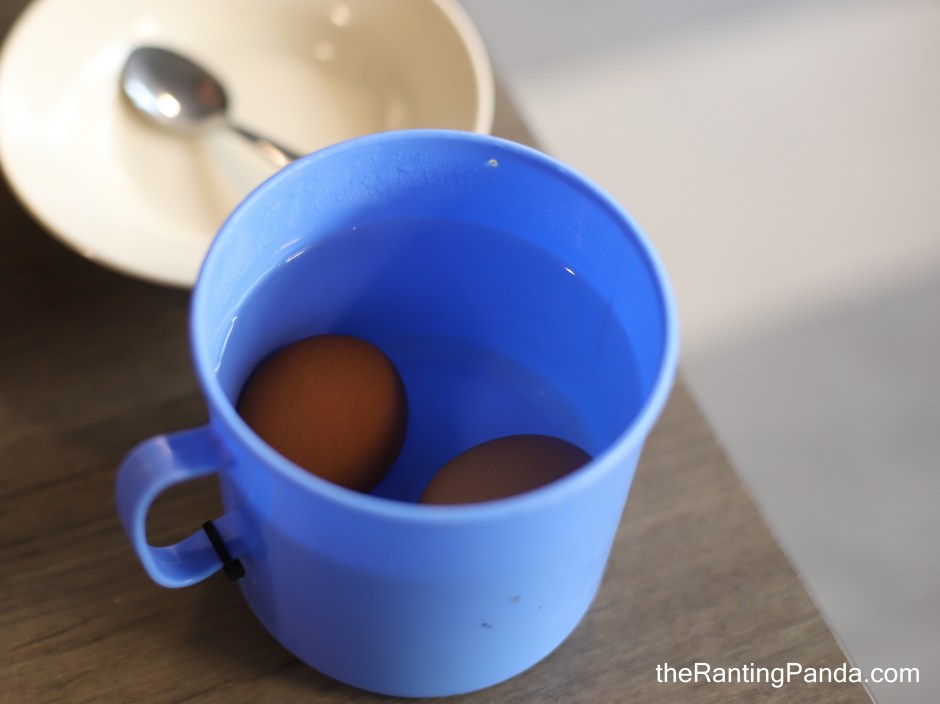 The eggs come served in an old-school fashion where it is in a big mug where you let it sit for 3-4 minutes before breaking it.