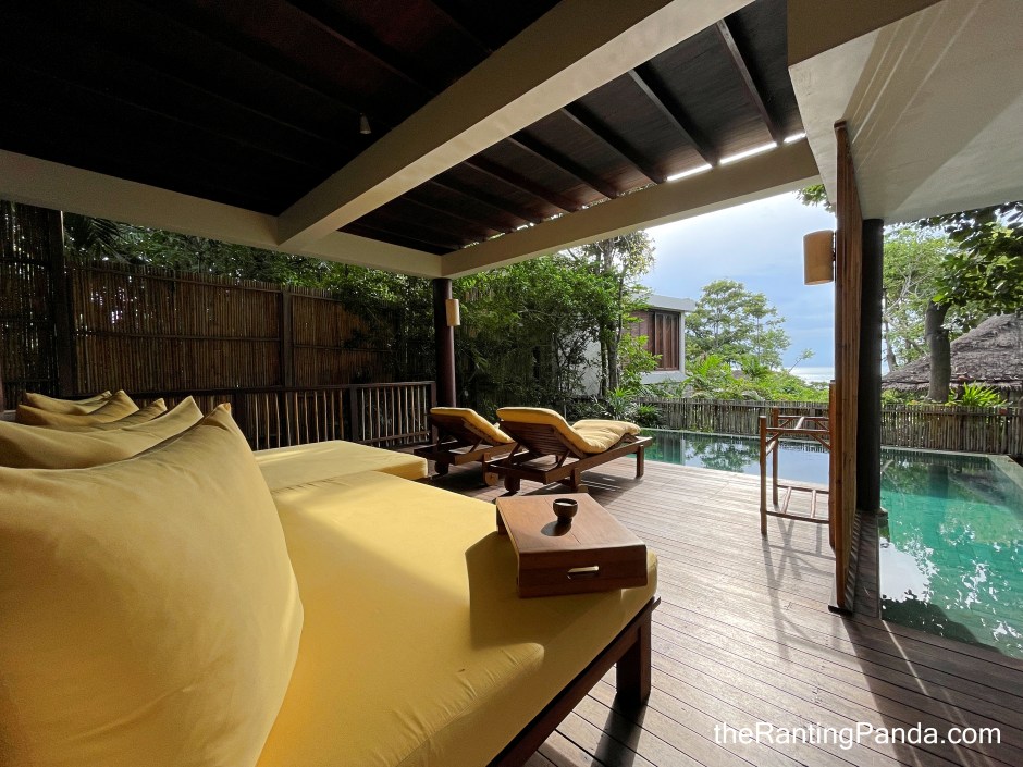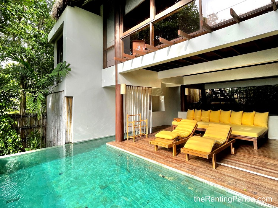 My pool villa comes with a tropical view, and I was immediately drawn to the private pool upon entering the villa. The villa is a spacious split-level layout with the bedroom situated on the upper level and the pool deck on the lower level.