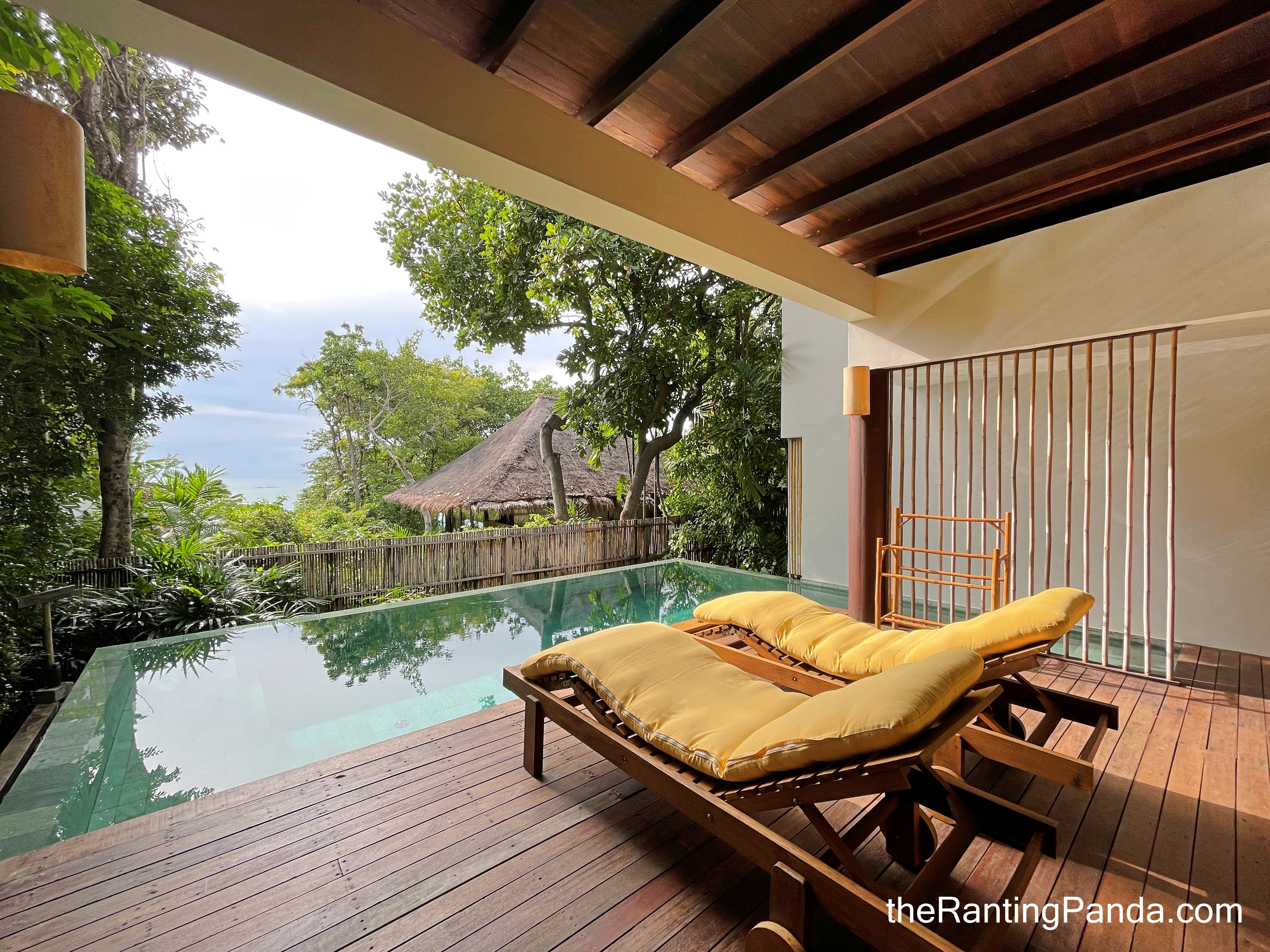My pool villa comes with a tropical view, and I was immediately drawn to the private pool upon entering the villa. The villa is a spacious split-level layout with the bedroom situated on the upper level and the pool deck on the lower level.