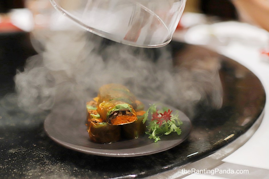 What To Expect? Many of Chef Daniel star dishes in Hong Kong are featured in the new menu. Expect dishes like the Applewood Smoked Bean Curd Rolls with Shiitake Mushroom, Carrot and Green Mustard (S$18) where the Bean Curd Rolls rolls are finished by smoking over the steamer with Pu-er tea, sugar and uncooked rice, which impacts a nice smoky flavour to the bean curd.
