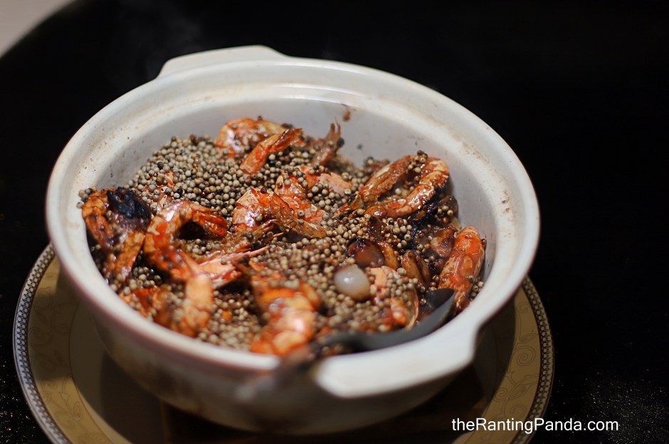 A specially crafted dish for the Singapore palate is the Baked Live Prawns with Garlic and Sarawak White Pepper (S$58), presented in a sizzling casserole pot. This dish uses local prawns, and you get that strong hint of spices in flavour.