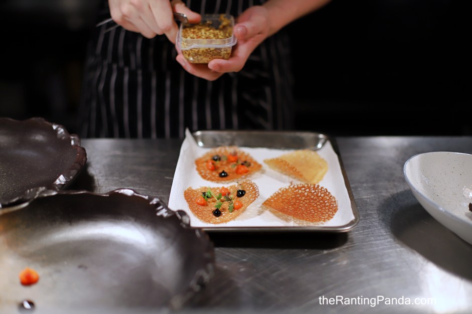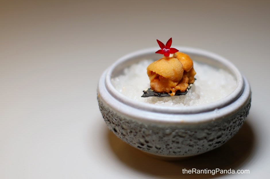 Starting with the Amuse Bouche, I first had the Sea Urchin – Bafun Uni topped with calamansi foam and rested on a sesame cracker. Expect fresh, luscious flavour of the Uni.