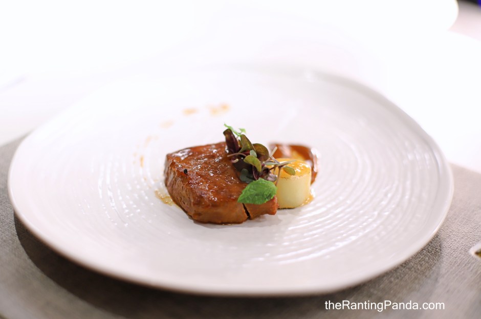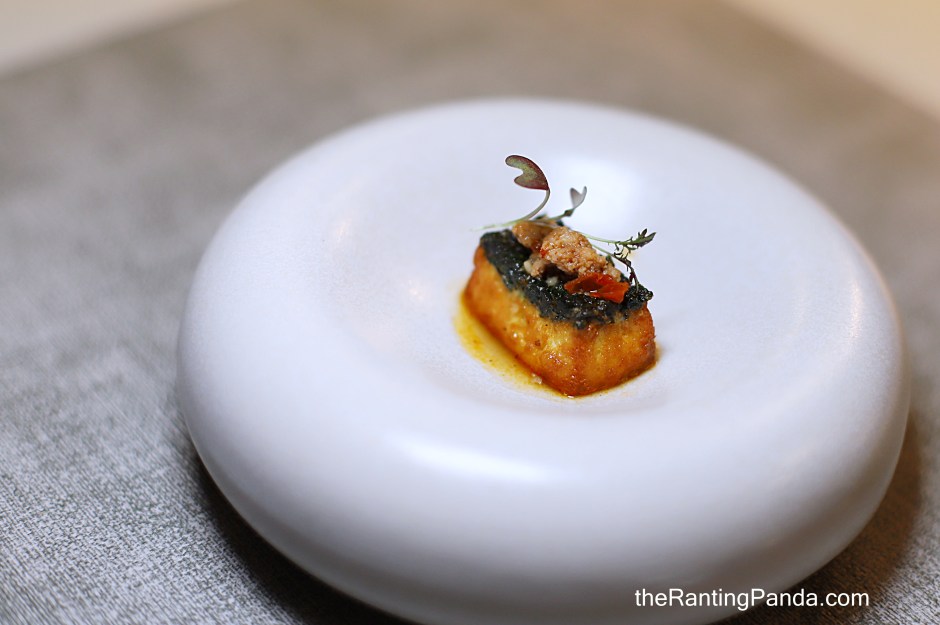The next amuse bouche is the Mapo Spanish Tofu which is deep-fried and topped with Szechuan inspired minced pork. Slightly tangy, but very appetising.
