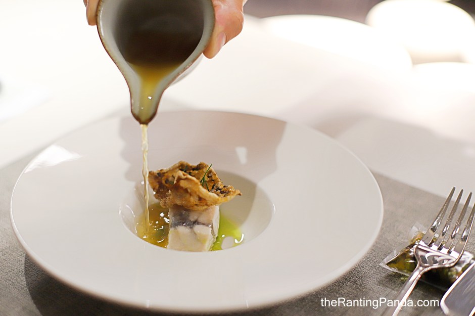 The first course proper is the Risotto – a roulade of chicken, spring onion pesto and ginger tuile. There are bits of in-house made chilli and dark soya sauce and if you would have guessed it by now, this is a take on Singapore’s local chicken rice dish. I really love that moist texture and delicious flavour of the risotto, a perfect showcase of how east meets west.
