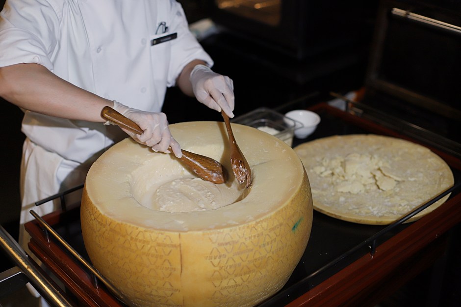 What To Expect? Expect Cold Starters, Hot specialities, Pinsas, desserts and live stations such as roasting chestnuts over flaming firewood and freshly-made pasta delicately twirled inside a cheese wheel with the Mafaldine Cacio e Pepe in Parmesan Cheese Wheel.
