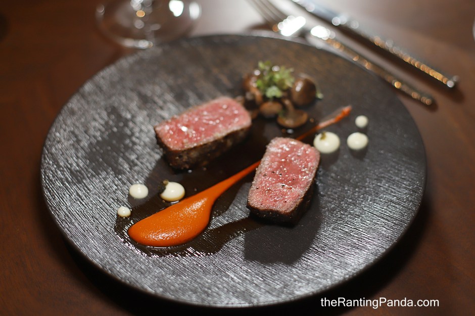 For mains and also the third course of the Experience Menu, I chose the MBS 8-9 Yugo Wagyu Beef Striploin with Pizzaiola, Blue Foot Mushrooms, and Pink Garlic (S$88++). Beef lovers like myself will love that well-marbled and flavourful F1 Yugo wagyu beef along with the roasted blue foot mushrooms. The meat is accompanied by pizzaiola sauce, an amalgamation of cherry tomatoes, fresh oregano, and garlic.