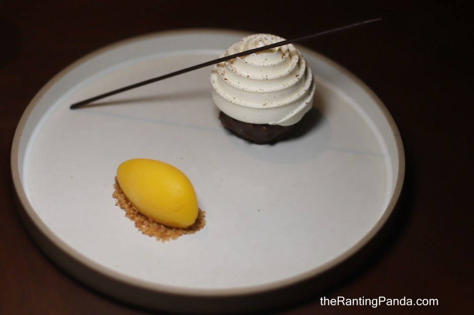 Last but not least, there are a few selections for the dessert course, and I went for the Giffoni Hazelnut with Guanaja Dark Chocolate and Raspberry (S$18++), a multi-textured sphere with Giffoni hazelnut, vanilla, and red berries. It does not taste as rich as it sounds as the berries balance the hazelnut and dark chocolate flavours.
