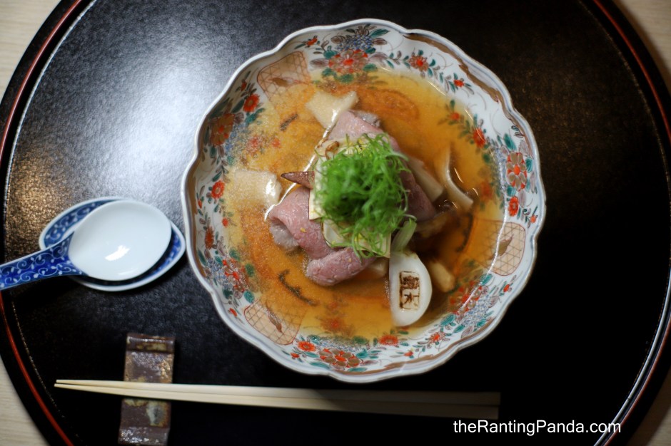 A very well-marbled beef which is very flavourful, simmered in a delicious dashi broth with hints of yuzu skin peel, and paired with some of the best ingredients – the highly prized Matsutake (Pine Mushroom from Nagano) mushroom and a unique Goma Tofu (Sesame Tofu) which lies beneath the beef.