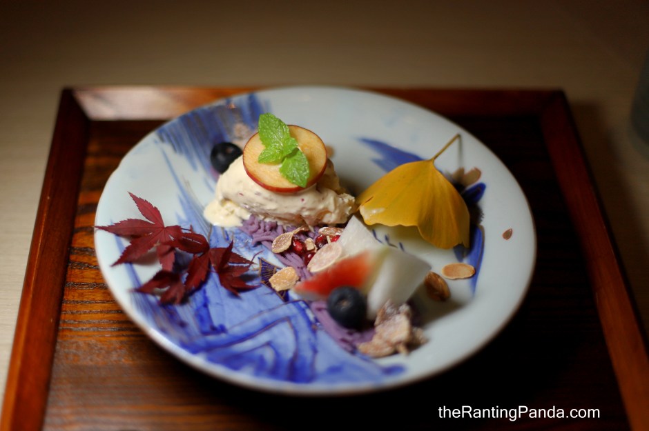 Next part of the dessert is a Handcrafted apple ice cream with Ichijiku (figs from Aichi), Nashi (Pear from Yamanashi) and Sweet Potato. It is definitely a visual treat to watch Chef Shim make the ice cream on the spot, probably the first of a kind for me in terms of theatrical experience.