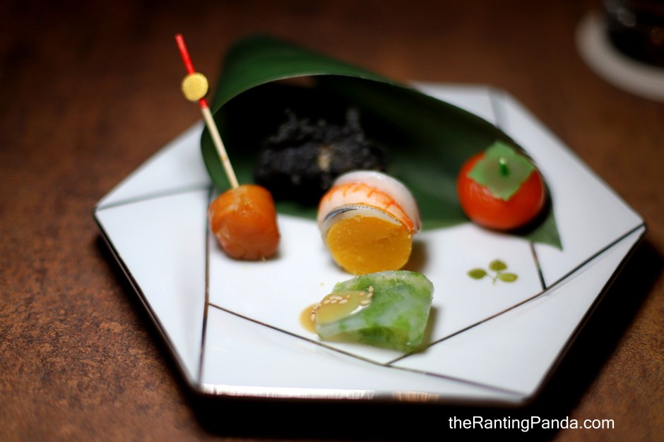 I had the 8-course dinner omakase (S$98++) and started with the Zensai, an assorted mix of appetisers – Tazuna Sushi (egg, salmon and prawn), Smoked Scallop, Seasonal Mochi, Karaage and Konjac. My favourite is the crispy Karaage!