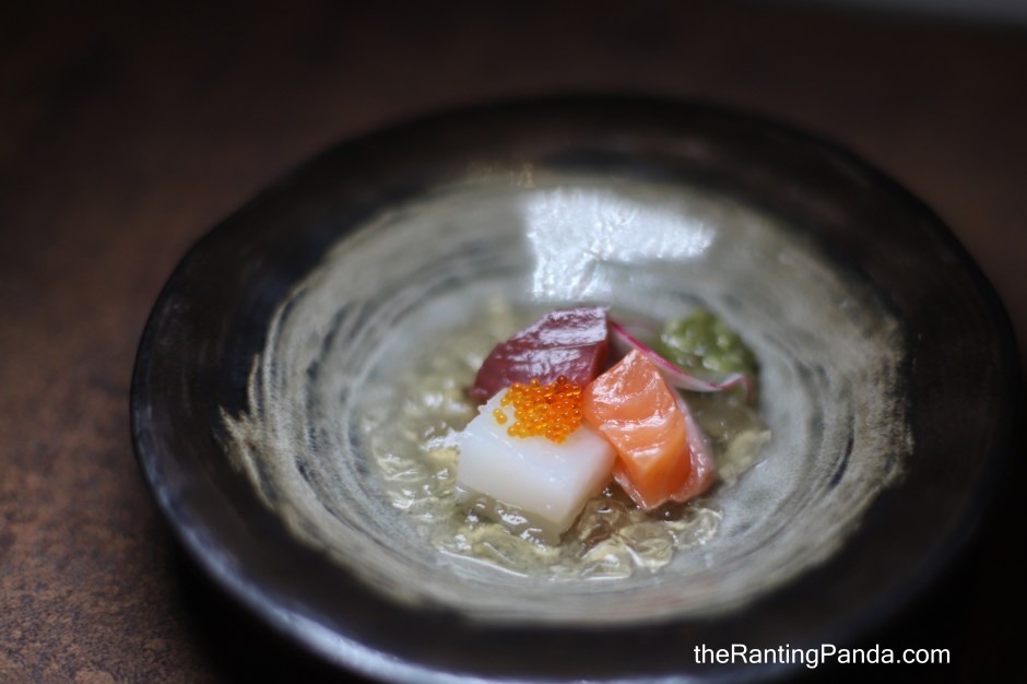 Next up is the Sashimi which is an assortment of Salmon, Squid and Tuna served with bonito jelly.