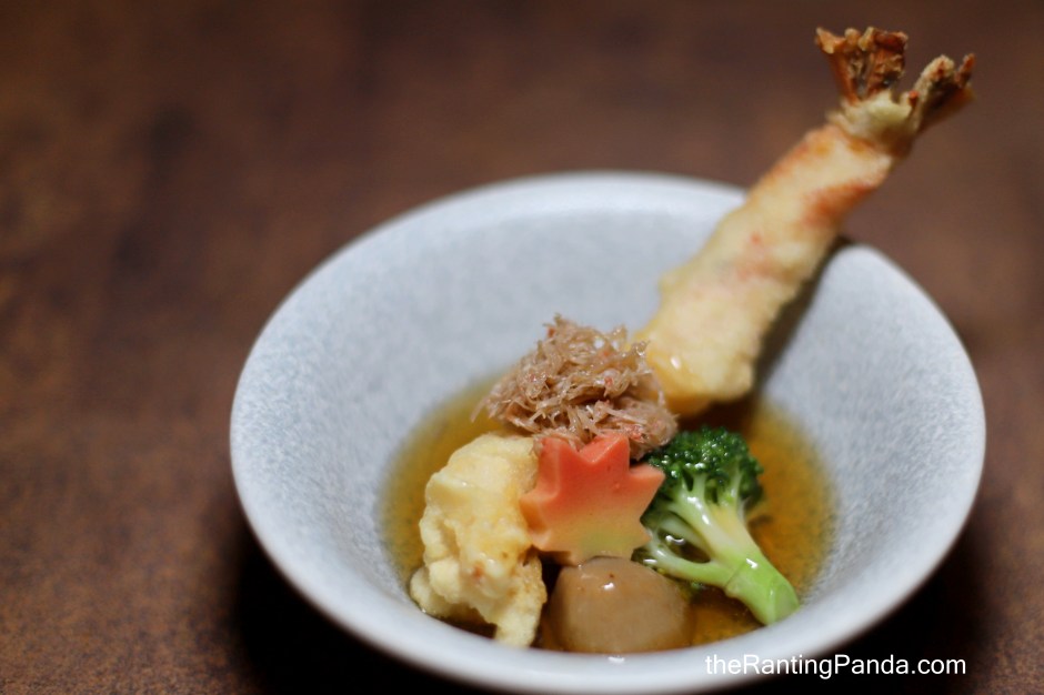 I then had the Tempura course, a Prawn tempura served along with shredded snow crab, yam and broccoli. I personally prefer my tempura batter to be crispier.