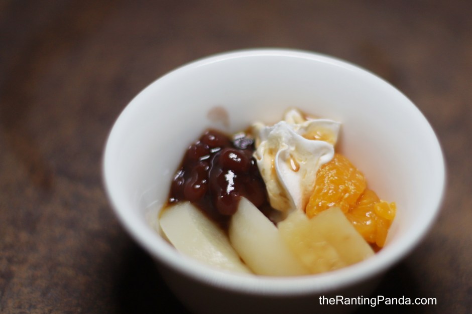 The last act is Dessert and it is the Cream Anmitsu – a combination of Japanese agar-agar, red bean, whipped cream and fruits.