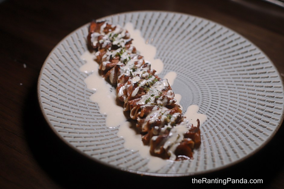 Upon entering the restaurant, I was greeted by a cosy bar area, followed by the main dining hall which exudes a stylish dining ambience with a skylight over the space. For greater privacy, there is also a dining section right at the end of the shophouse space. The semi-open kitchen also allow diners to feel the energy of the kitchen crew while waiting for your food.