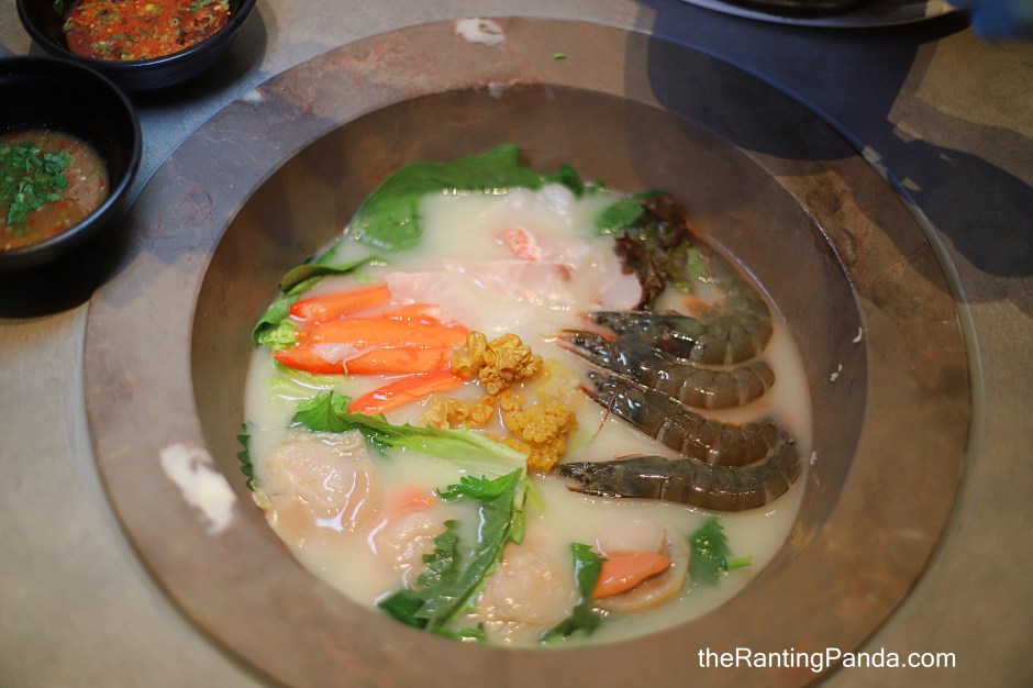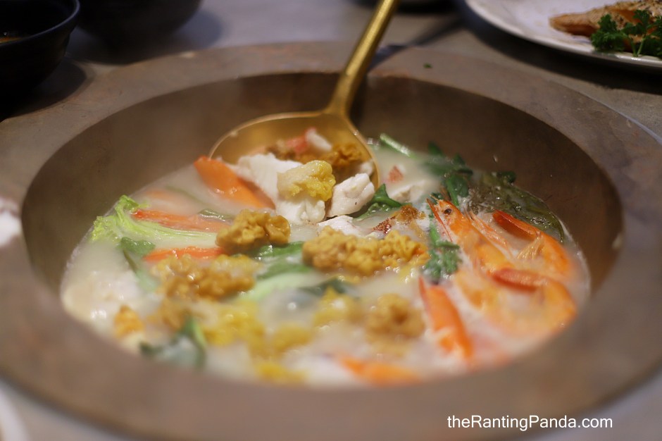 Once you are done with the first round of fish, the staff will place the remaining fish meat on a separate plate, before adding other dishes you have ordered into the pot. I had the Seafood Platter (S$32.80/small) which include ingredients like scallops, fresh prawns, fish maw and prawn paste; along with an Assorted Vegetable Platter (S$13.80/small) which include the likes of wheat pumpkin, lotus root, chayote leaves, spinach, golden fungus and Lijiang purple heart potatoes. These are then cooked in the pot for few minutes.