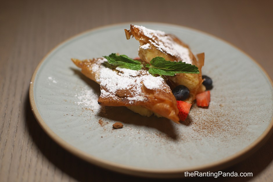 There is also the Greek Bougatsa (S$14) which is custard cream with crispy pastry filo and cinnamon sugar. You get a crispy and light pastry fill texture, balanced with bits of berries on the plate.