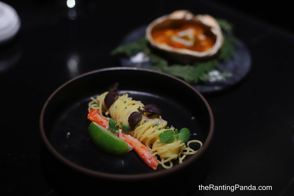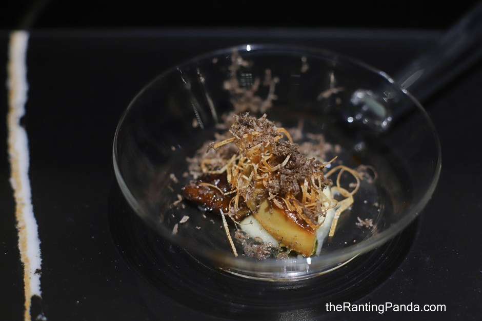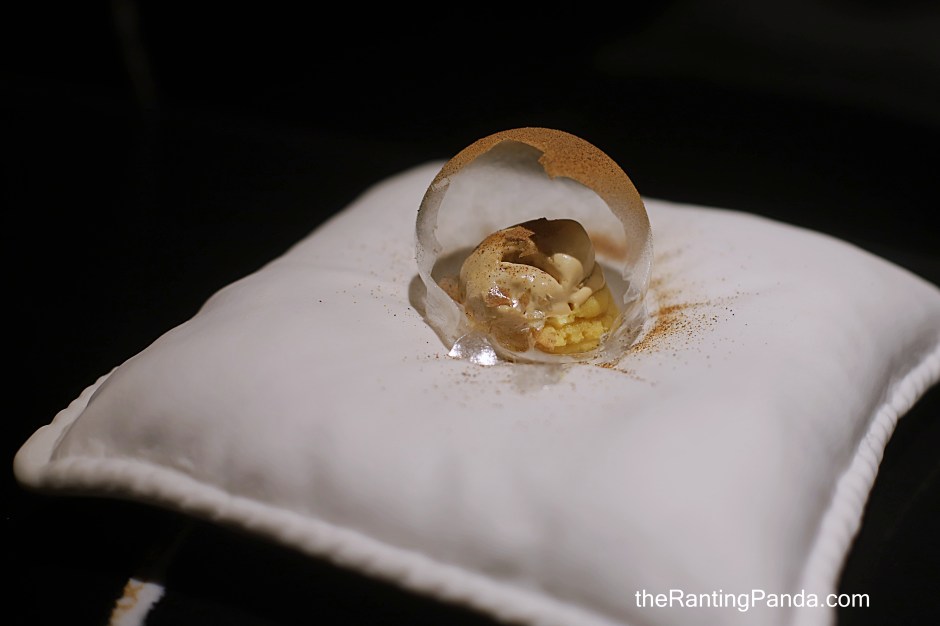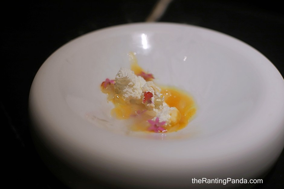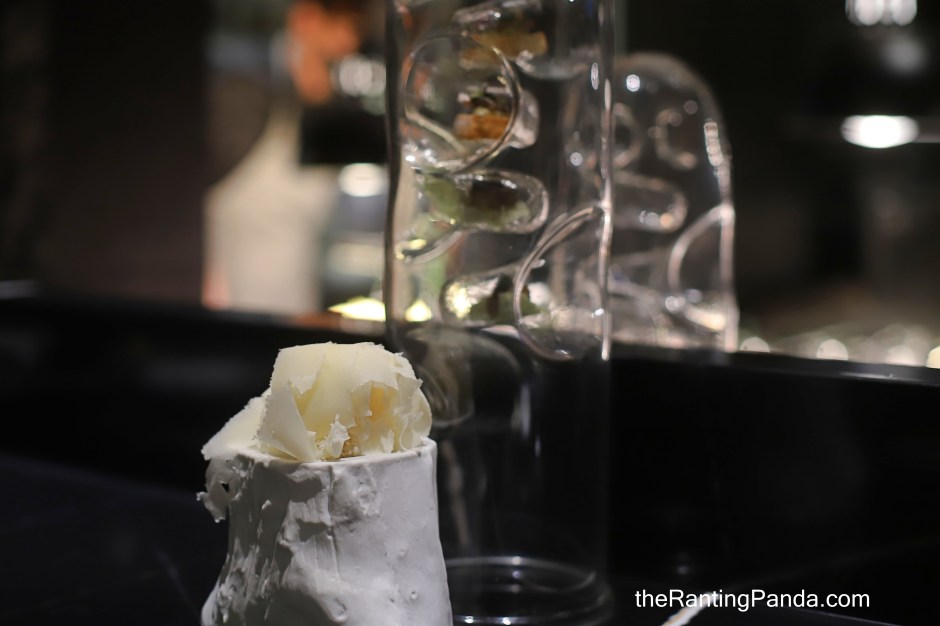 Next up is the Wabi Sabi course – Himi Winter Yellowtail, Smoked Daikon with Mascarpone Cheese and Daikon Herb Powder. It feels like a winter wonderland.