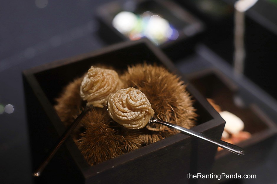 Finally, a series of Petit Fours to conclude the meal. I had Chestnut from Italy, Italian pistachio and a puff infused with Yamasaki whisky. Every bite size here is on point.