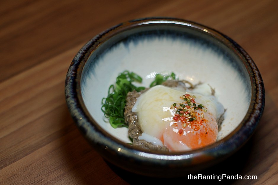 The next course is Crabmeat miso with onsen egg and spring onions, an interesting take on crabmeat. The miso accentuates the flavour of the crab, while the onsen egg complements the crab very well.