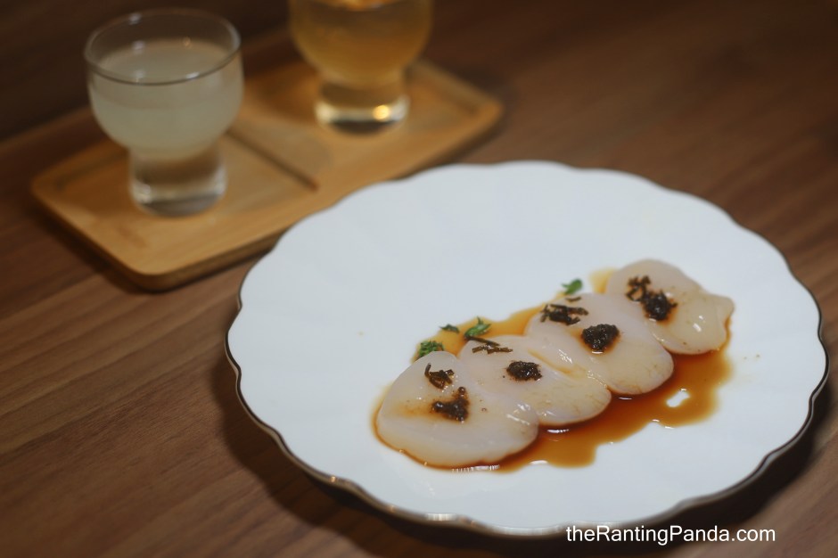 Next up is a sashimi dish where I had the Hokkaido scallop carpaccio in a truffle soya sauce housemade by chef. The scallop is topped with bits of truffle paste, where the flavour is very fresh and I like how the subtle notes of the truffle complemented the scallop here where it is not too overpowering.