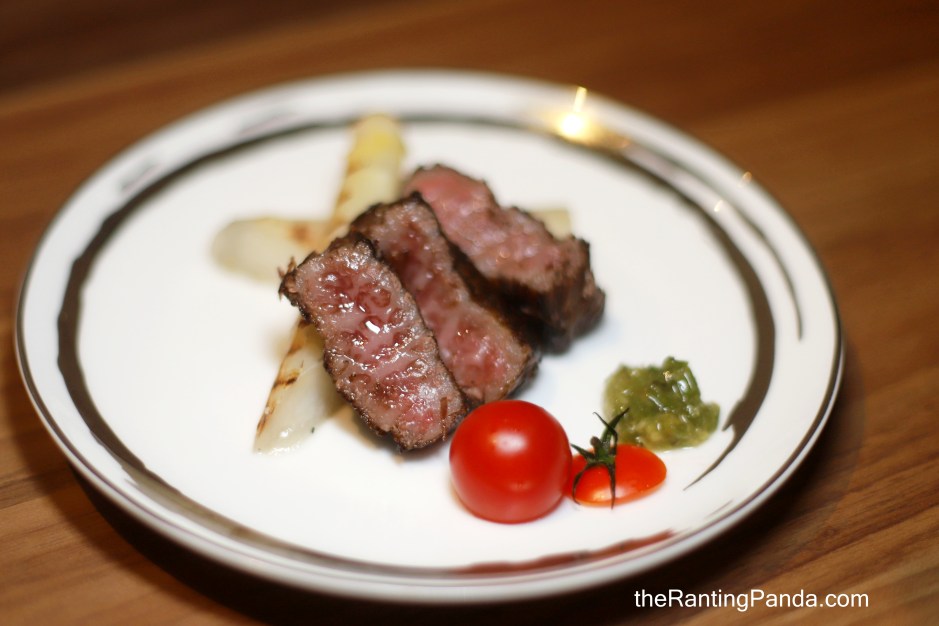 There is also pickled wasabi by the side to go with the beef, though I thought that it would also be nice with a pinch of salt. It also comes with some Japanese white asparagus which happens to be in season.