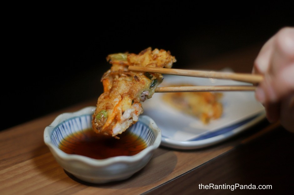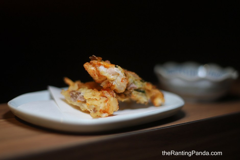 For the fried course, it is a tempura dish of seafood kakiage, a mix of green and white onions, prawns, scallops, white fish like hamachi and tuna. It has a nice crunchy texture, and it is not too greasy.