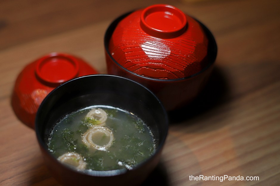 The last savoury course is a soup which is not a typical miso soup (thankfully), but a light and comforting fish bone soup with rockweed seaweed.