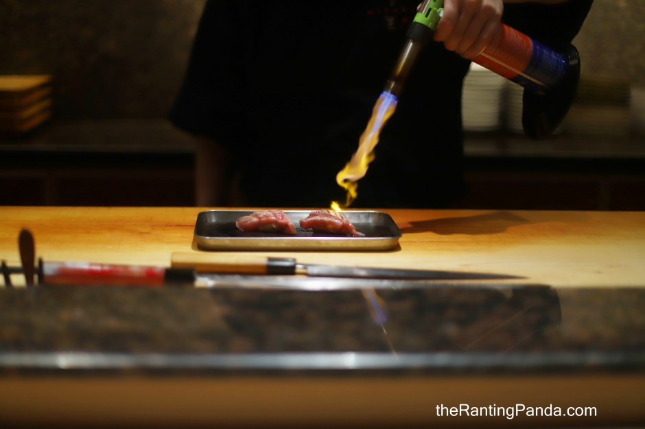 The fatty tuna is torched and applied generously with soy sauce. This is full of umami.