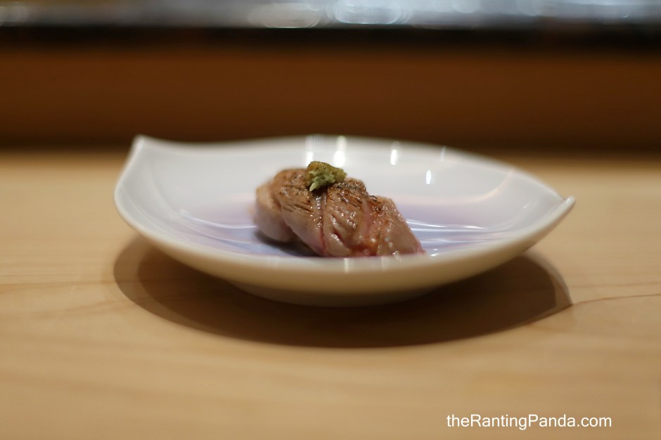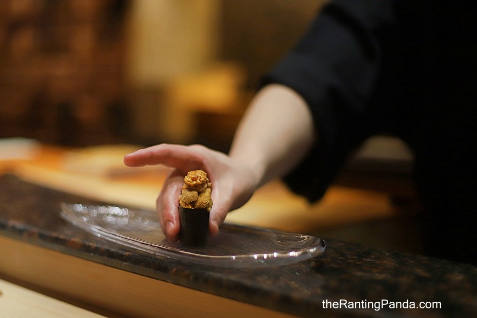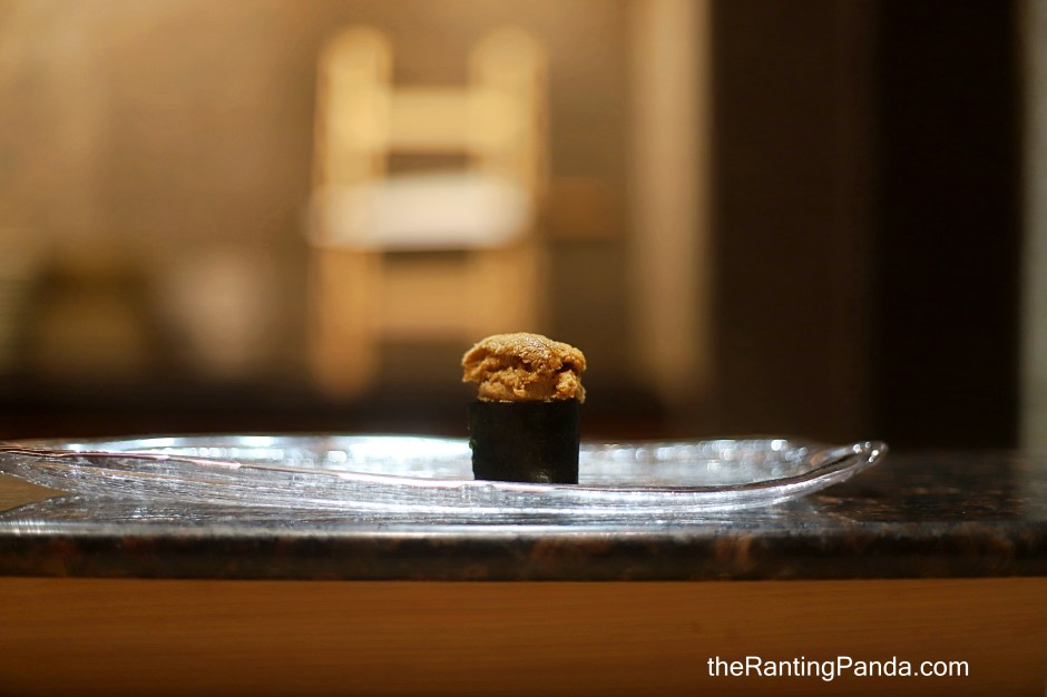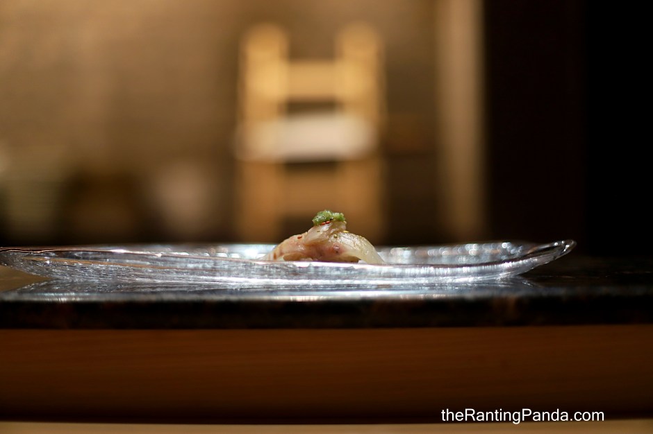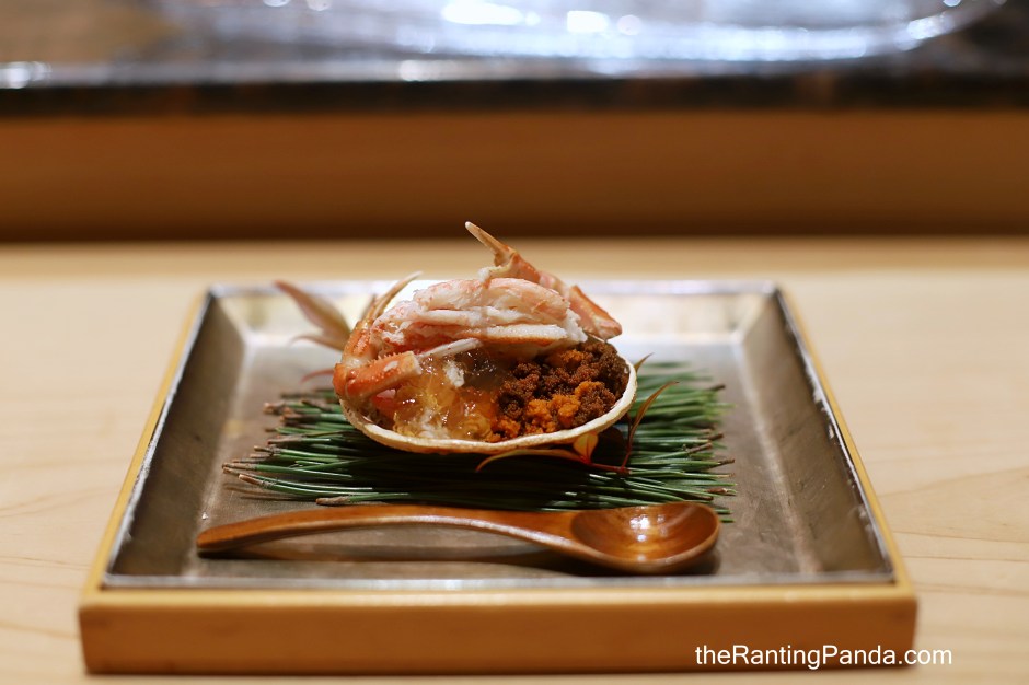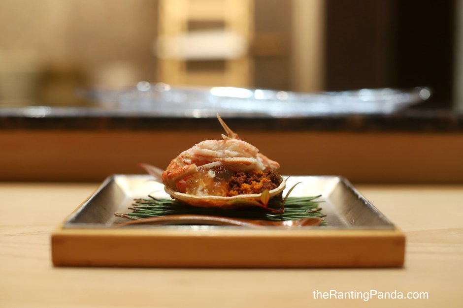 Right before the sushi act, I had a seasonal dish of Seiko kani – steamed and deshelled Hokkaido female snow crab with roe. Expect generous heaps of snow crab and crab roe from Hyogo prefecture along with cubes of dashi jelly.