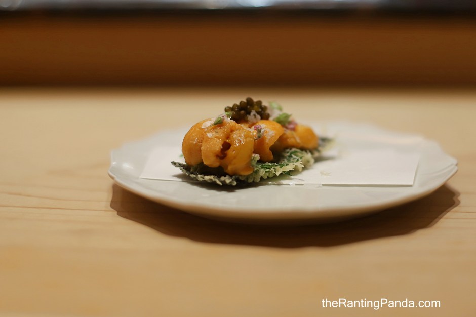The signature seaweed tempura spots a generous slab of Bafun Uni along with fried mint leave, topped with caviar no less. Nice and creamy texture of the Uni which is a nice contrast to the crisp texture of the seaweed, along with a tinge of mint after taste from the mint leaves. Oishii.