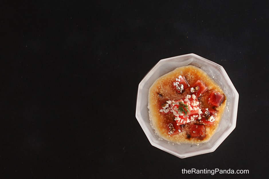 Watermelon & Feta Cheese Salad – 90% Frozen Watermelon, Feta Cheese, Tomato Juice, Balsamic Glaze, Mint
