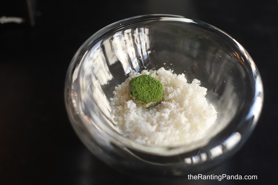 My First Time Ever Dessert – Aerated Apple Sorbet, Chrysanthemum Sorbet, Sugar Torched Japanese Tofu, Salt, Matcha Powder