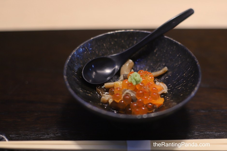 A simple combination of Japanese beancurd, mushroom and salmon roe.