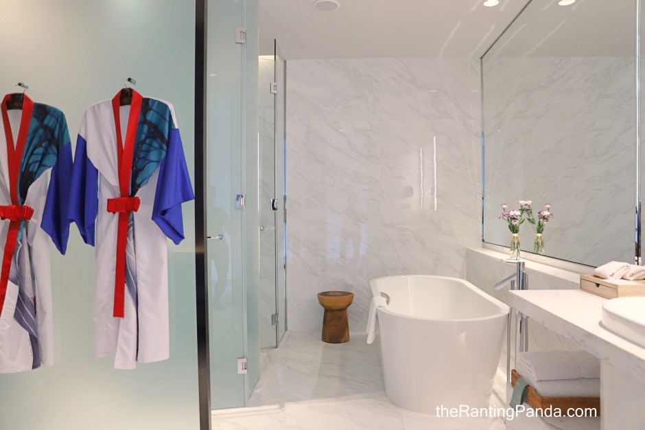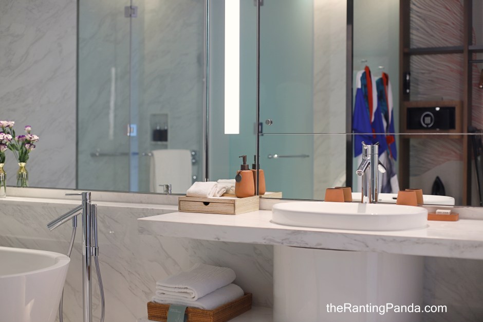 No double vanity sinks, which is not a big issue for me. What you get instead is separate bath and rain shower, a spacious bathtub, and is complete with bespoke Harnn bathroom amenities exclusively designed for Kimpton Maa-Lai Bangkok.