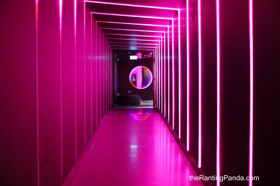 The walkway to the hotel rooms and lift lobby is playful with the ever-changing neon lights, and it does remind me of a scene from the Matrix movie.