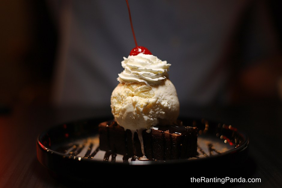 For dessert, I had the House Brownie (S$12) baked with sea salt and walnuts, crowned with charred burnt cheesecake gelato, chocolate syrup, whipped cream and a cherry.