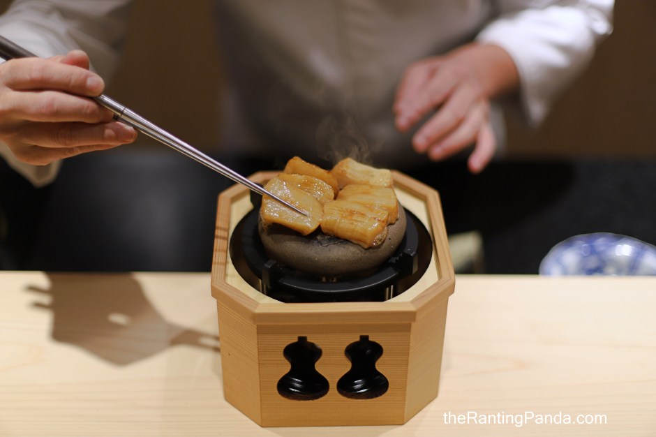 A mix of hot and cold ingredients to whet the palate, I love that delicious grilled tairagai (Japanese pen shell) which reminds me of scallops. The fresh Uni and Yuba are a delight to have.