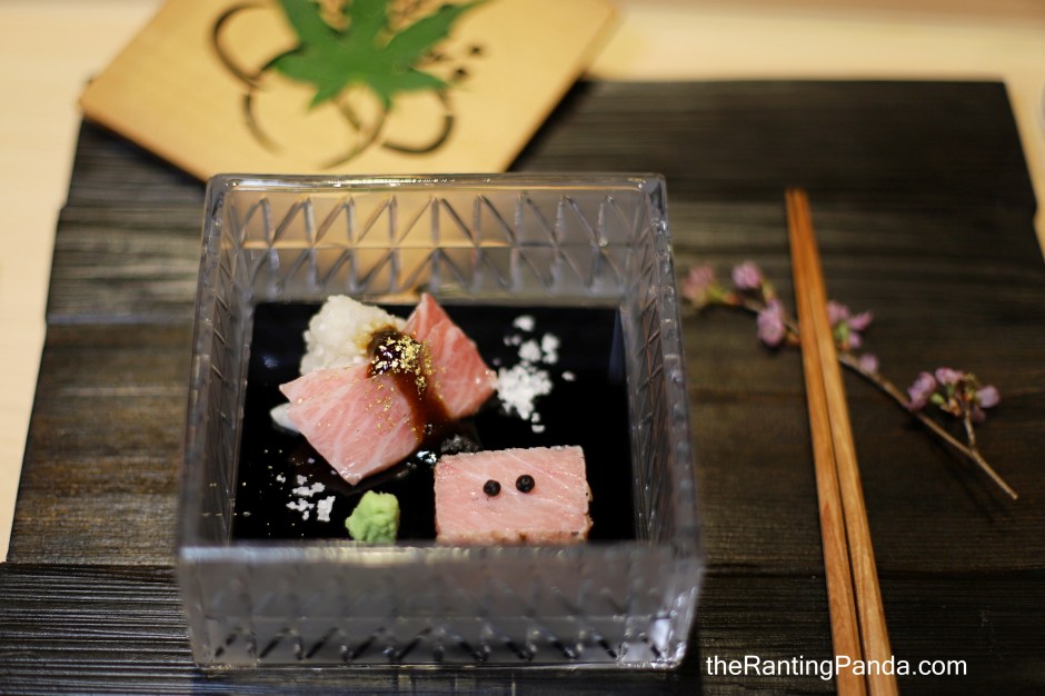 Dashi is a strong focus at Ikkagoyo and it is the essence of most of the courses here. I was served a small cup of the Golden Dashi Broth where the taste is extremely unadulterated. It is prepared with Rishiri kelp along with freshly shaved katsuobushi (skipjack tuna flakes) and magurobushi (bluefin tuna flakes).