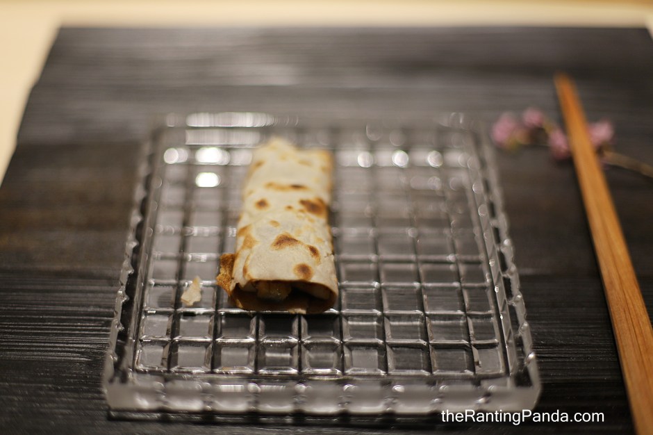 My favourite course on the dinner menu, as it also surprised me the most in terms of presentation. You get a glistening eel from Oigawa with thinly shredded seaweed, French almond cream cheese, freshly grated black truffle and a sprinkle of homemade truffle oil powder. There are no soba noodles per se, but instead you get a buckwheat flour wrap where you fold all the ingredients up and eat it like a wrap.