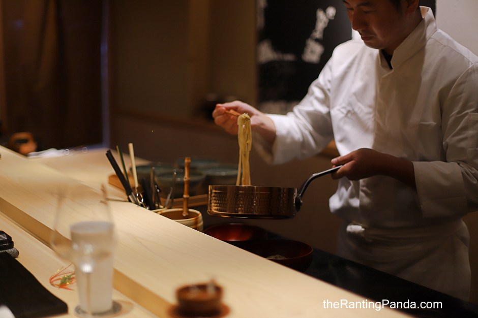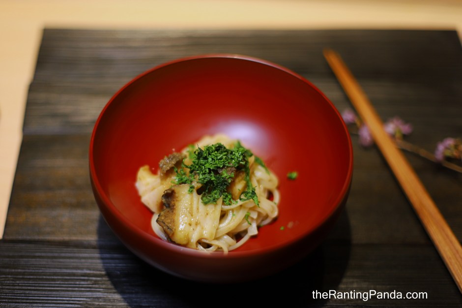 The abalone from Ishikawa is placed atop the hand-stretched Himi udon that is sautéed with a homemade abalone liver sauce and butter; and finished with menegi (Japanese green onion shoots). Delicious and light flavour of the udon, though I feel that the abalone liver sauce could be more intense.