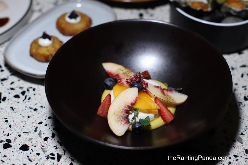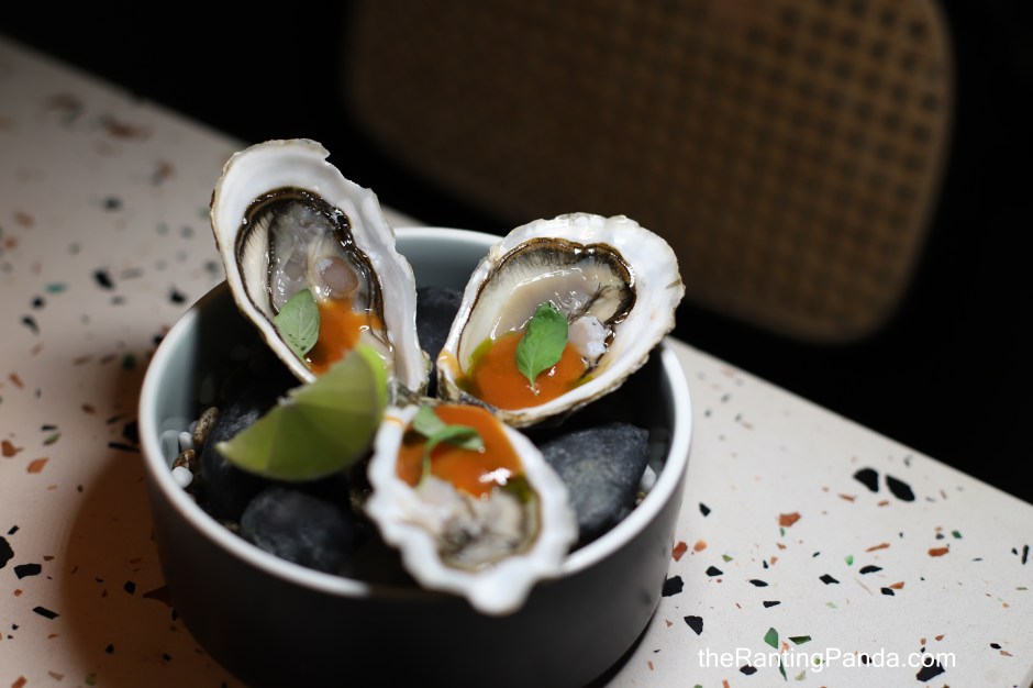 My meal started off with some Fresh Oyster (S$28/3 pieces) which features freshly shucked Amélie osters from Marennes-Oleron, France. You can choose to have it with lime wedges or tomato tamarind and basil kemangi pandan oil.
