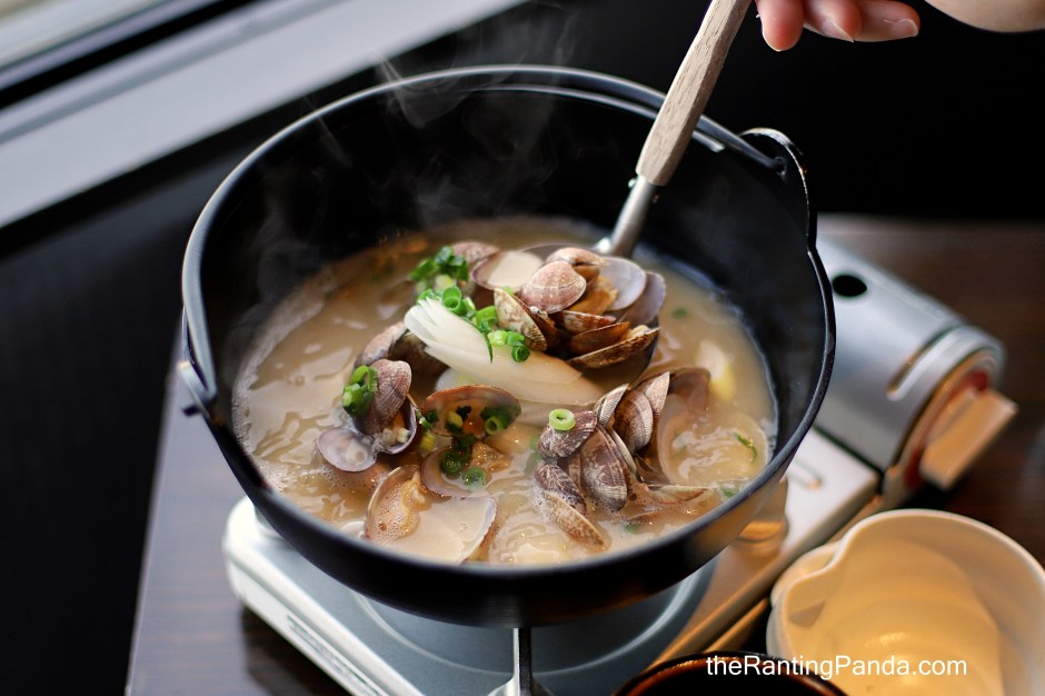 There is also a small pot of boiling miso soup with clams and sea lettuce for sharing, which is perfect to start the day.