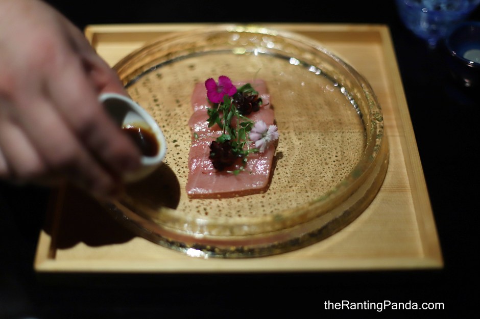 The fresh air-flown Toro is beautifully presented in two ways; a Black Truffle Carpaccio with Tamari Soy Sauce (S$68) and a Kampachi Tartare topped with Caviar and Wasabi Soy Sauce (S$78).