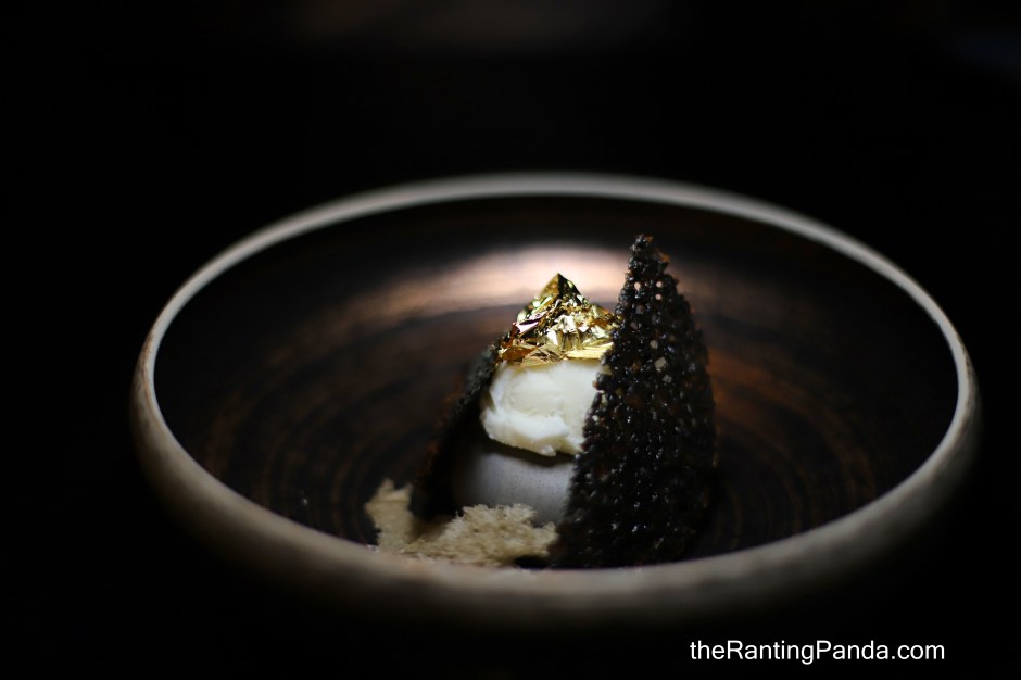 The Black Sesame Blanc Manger (S$25) is a strong presentation of Japanese black sesame, with a sesame mousse, Hokkaido Milk Ice Cream wrapped in gold leaf and a house-made black sesame tuile and caramelised sugar.